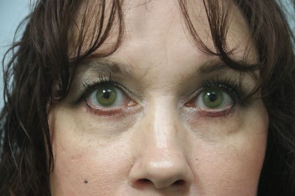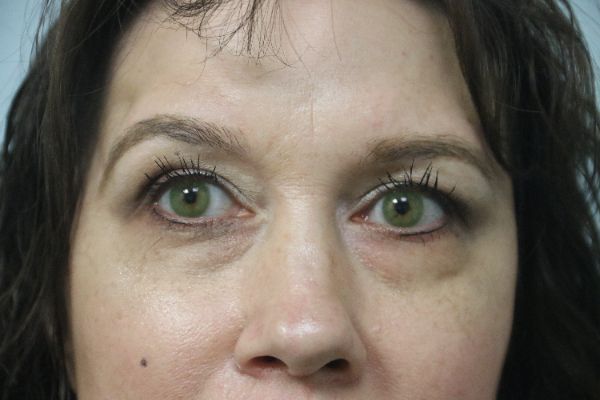 This patient in her 40s was tired of people saying she looked tired. Her lower eyelid fat pads bothered her. She underwent a lower blepharoplasty to remove the excess fat and excess skin. She now loves her lower eyelids.