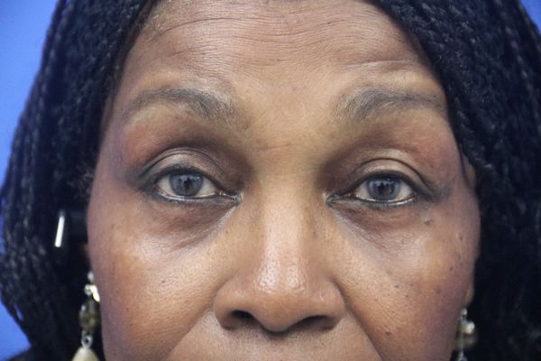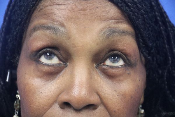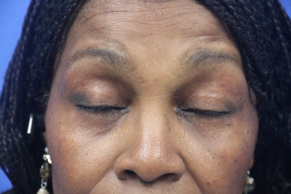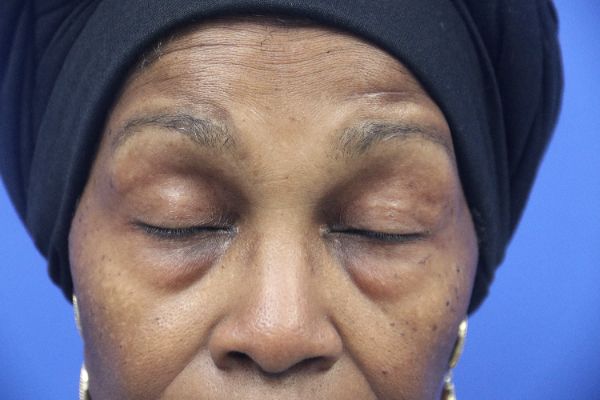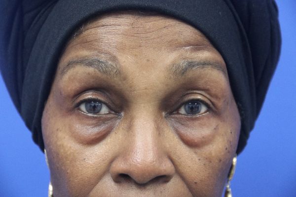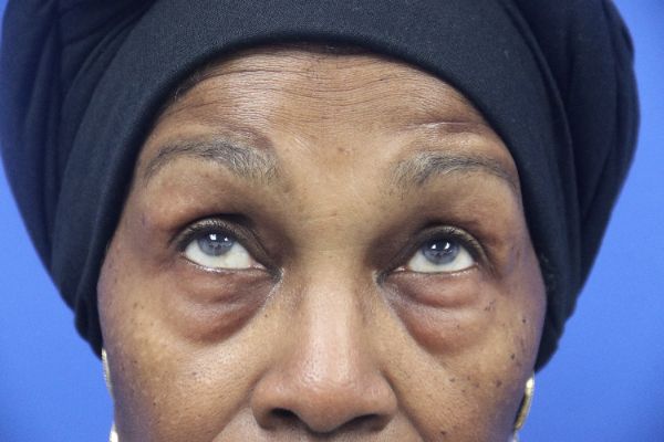 This patient in her 70s was bothered by her lower eyelids In the before photo you can see the prominent lower eyelid fat pads. Dr. Guy performed a lower blepharoplasty which takes about 30 minutes. In the after photo you can see how great her lower eyelids look with a great contour and no hollow appearance.