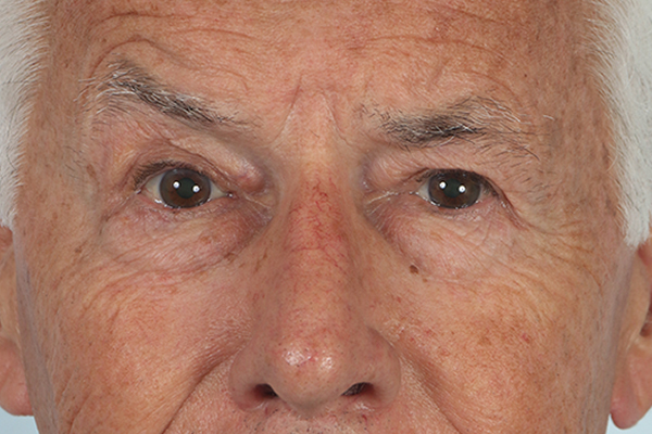 This patient in his 70s had a previous lifestyle lift which doesn’t address the forehead. To keep his heavy eyebrows off of his eyelids, he was using his forehead muscles creating deep wrinkles. The deep wrinkles did lead to the ability to perform what’s called a mid-forehead or indirect brow lift. The incisions placed directly into a wrinkle on the forehead and the brow raised. As you can see in his before and after it does a great job lifting the brow yet remaining camouflaged in his natural forehead wrinkles.