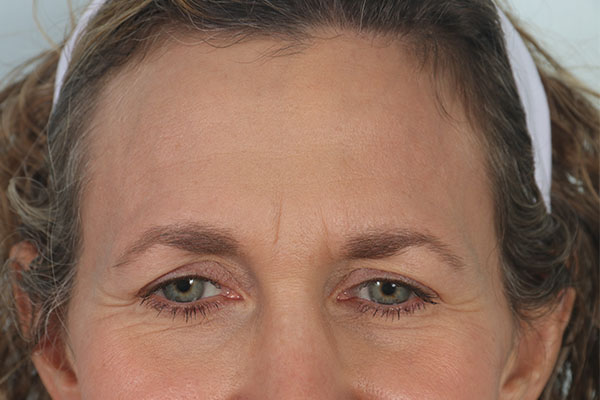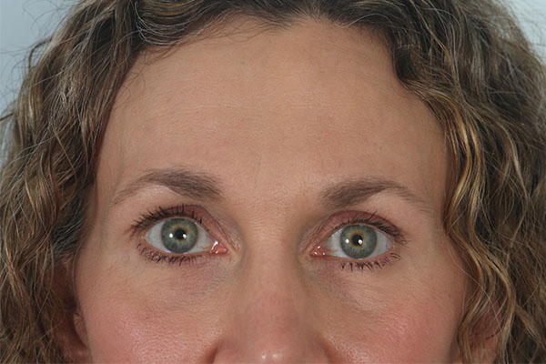 This patient in her early 50s was bothered by her jowls and heavy brows. She is in excellent shape but felt she was sagging around her jawline. She underwent a cheek lift and endoscopic brow lift. You can also see how her eyes look more awake from the brow lift.