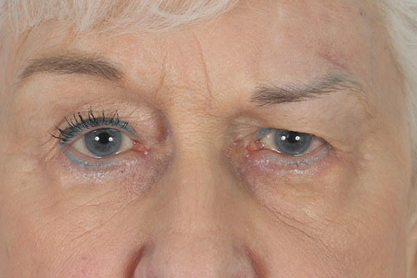 This patient in her 80s had, unfortunately, had a fall and hit the left forehead. This is where the nerve run that helps to raise the eyebrow (and frequently what we treat with Botox). However, the trauma caused her nerve to be crushed which left her with the inability to raise her left eyebrow. Dr. Guy performed both a scar revision and a direct brow lift which involves an incision above the eyebrow. This is ideal for patients with one eyebrow not functioning. The after photo is taken 1 month after surgery and you can see how symmetric her brows are. Although this procedure does not cause the muscle to be able to work again, it helps position the eyebrow in a more natural position. This also helped her vision since the heavy brow was causing the skin to hang over her left eyelid.