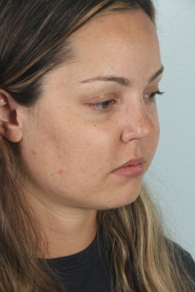 This patient in her 20s has been bothered by her fullness to her buccal space (cheek area). No matter how much weight she lost she would always feel her face was too round. She underwent buccal fat removal in the office. This type of treatment creates a subtle improvement in the fullness of the cheeks creating more contour to the cheekbones. In the after photo she is 3 months after surgery and you can see more definition to her cheekbones and subtle improvements in the fullness of her face.