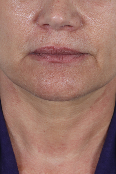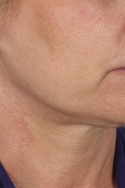 This patient in her 60’s is 5 months weeks out following a neck lift. The area that concerned her the most was the wrinkled and crepey appearing skin on the front of her neck. Her neckbands also bothered her which are the thicker lines just outside of the more wrinkled skin. In the after photo, you can see how smooth her neck appears, and she is thrilled. Performing an isolated necklift is not always possible, but in this case, it was all she needed as her jowls and the rest of her face did not need a lift.