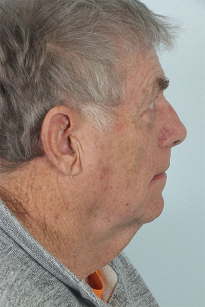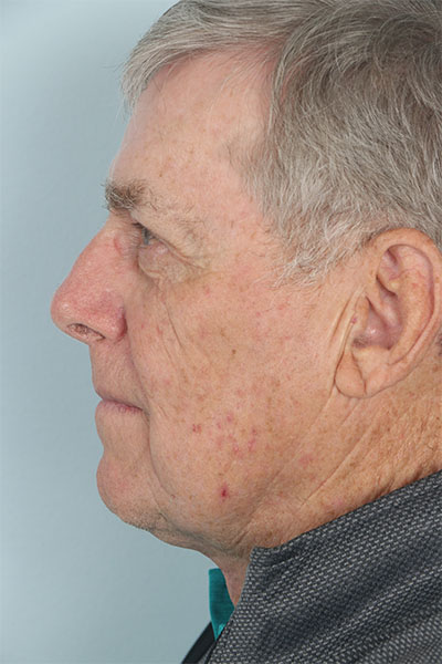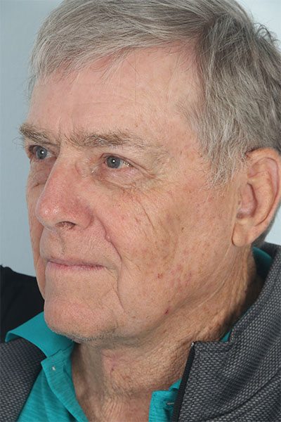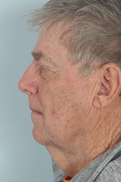 This gentleman in his early 70s was bothered by his turkey waddle and the heaviness of his upper eyelids. He wanted minimal downtime away from his golf game. He elected for the direct neck lift which involves an incision on the front of the neck. This can be an excellent option as it has less downtime than a traditional approach. In the after photos you can barely see his scar and you can see how much improvement he has had in the neck. Now his grandkids can no longer grab that area and swing it back and forth.