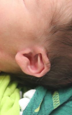 This baby was born with compression of his helical rim In the before photo if you look at the top of the ear and the middle of the rim of the ear you can see how they look squished in. Using the EarWell device in the after photo you can see the smooth contour, all performed in a non invasive, non surgical manner.
