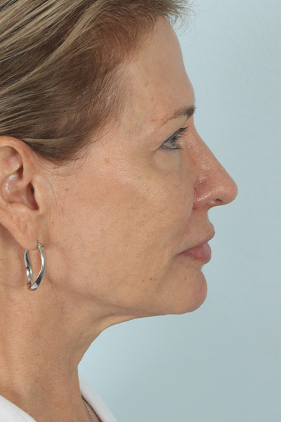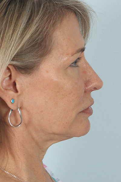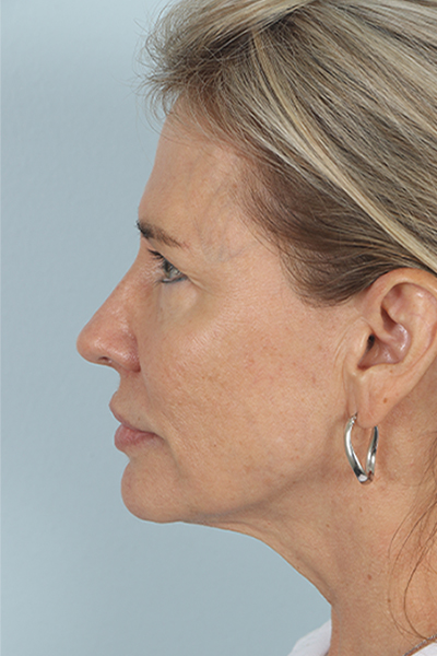 This patient in her mid-50s was bothered by her jawline and double chin area. She underwent theEmbraceRF system which combines FaceTite and Morpheus8 to help non surgically tighten and lift her skin. In the after photos, you can see how she has less fullness below her chin and a more defined jawline.