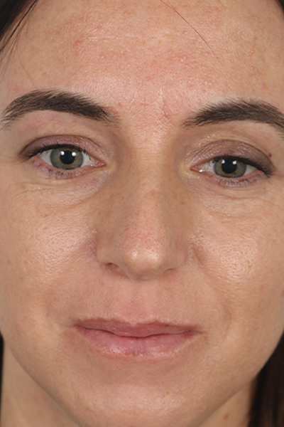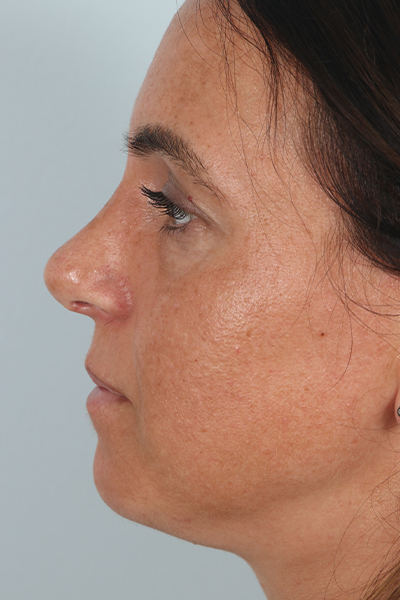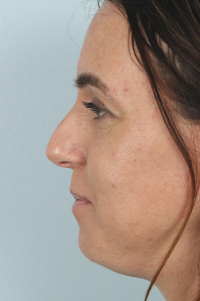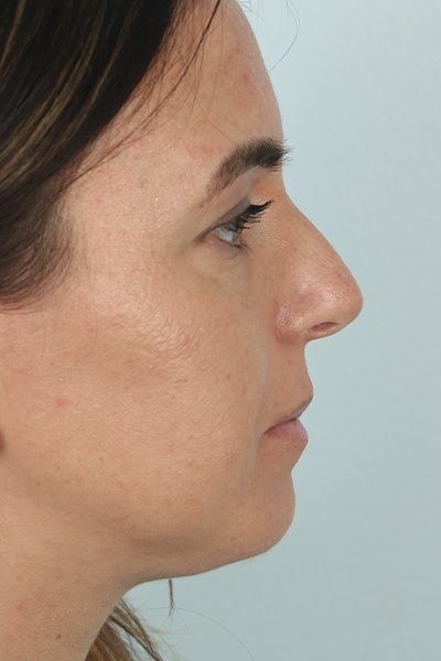 This patient in her early 30s was bothered by her lack of jaw definition and jowls. In the before photo, you can see how her cheeks blended in with her neck and she had a lot of fullness below the chin. She underwent the EmbraceRF system which combines FaceTite and Morpheus8 coupled with limited liposuction to the neck and jowls. In the after photo, you can see how her jawline is much better defined and she doesn’t have as much fullness below her neck. In addition, she underwent a rhinoplasty.
