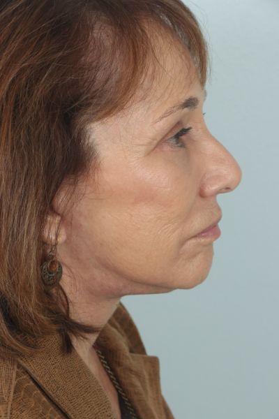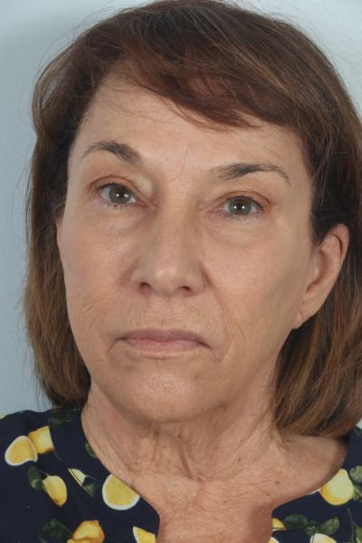 This patient in her 70s was bothered by her neck and jowls as well as her eyes. She underwent a cheek and neck lift with liposuction and a platysmaplasty. She also had an upper and lower blepharoplasty (eyelid surgery) to remove the excess skin and fat. In the after photos she is 4 months out from surgery and looking great.
