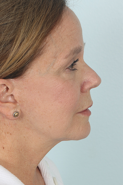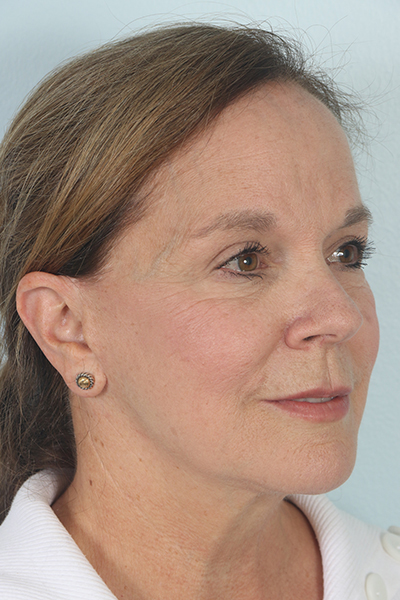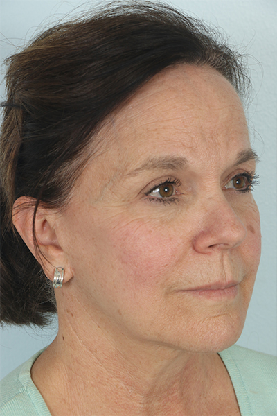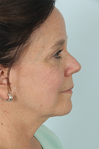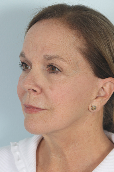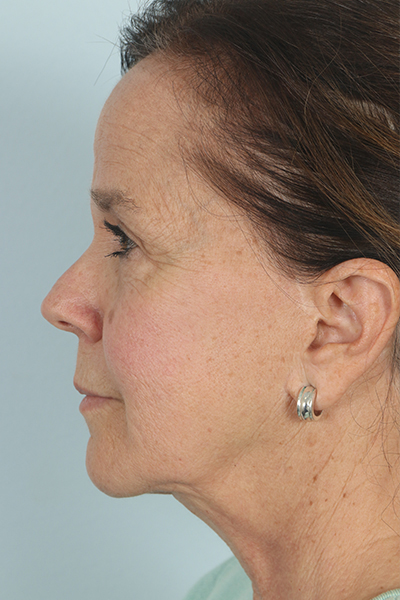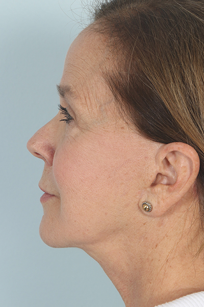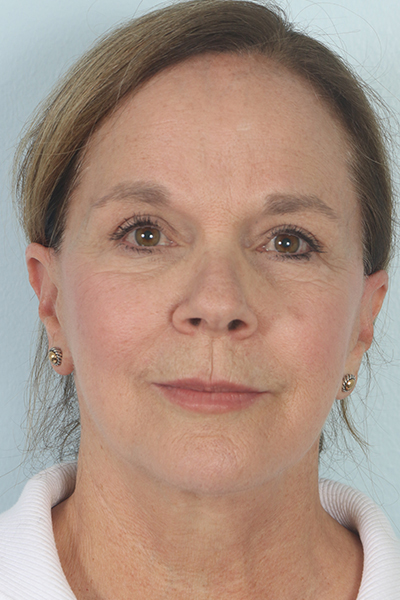 This patient in her early 60s had a previous facelift but had begun to notice some sagging again. She underwent a second facelift. In the after you can see how her jowls look much improved as does her jawline, yet she still maintains a natural result.
