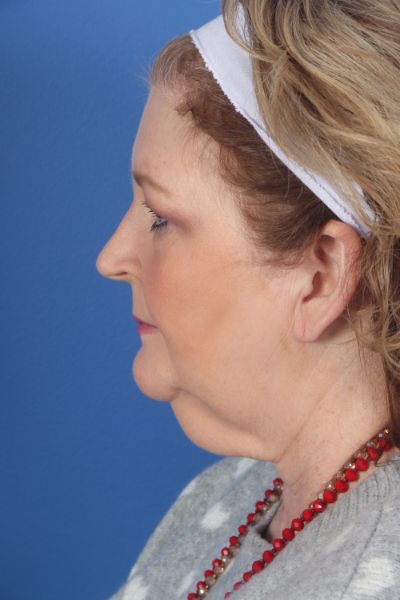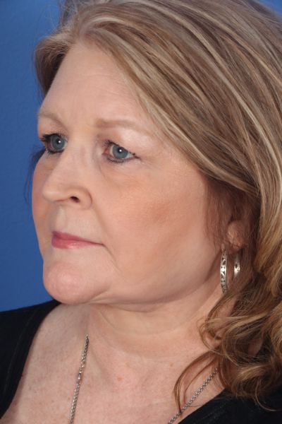 This patient in her 60s always had a heavy neck no matter how much exercise she did. Dr. Guy performed a deep plane neck lift with contouring of the deep neck structures. This included removal of post platysmal fat, a post platysmal lipoma, removal of preplatysmal fat, platysmal myectomy, and platysmaplasty. In the after photos, taken 10 months out from surgery, you can see the extent that her neck improved.