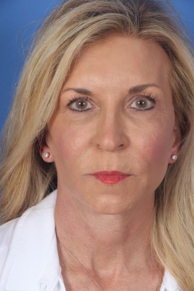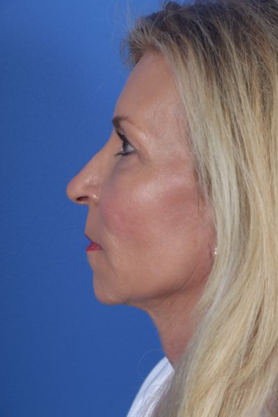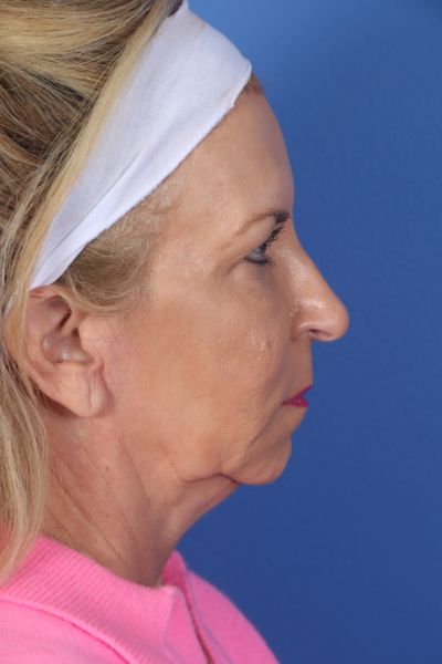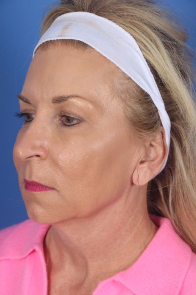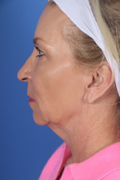 This patient in her early 60s said she didn’t look the way she felt. She didn’t recognize the lady in the mirror. Dr. Guy performed a deep plane cheek and neck lift (lower facelift) with platysmal myectomy, removal of post platysmal fat, platysmaplasty, removal of preplatysmal fat, and liposuction to the lateral neck. Additionally, she had an earlobe reduction and upper blepharoplasty. In the after photo see how much younger she looks but retains a completely natural appearance.