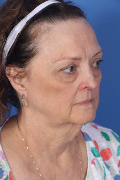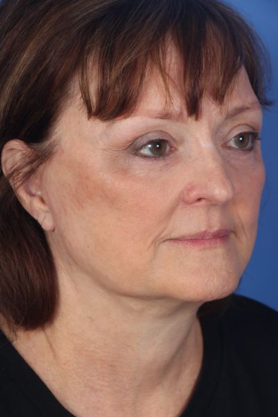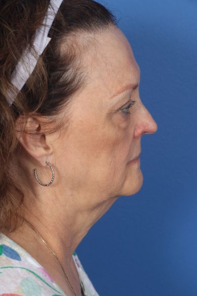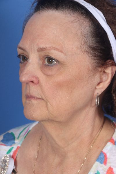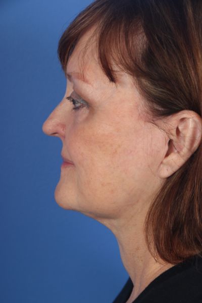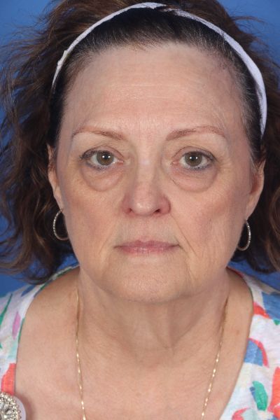 This patient in her mid 60s was bothered by her aging appearance. Dr. Guy performed a deep plane cheek and neck lift with removal of pre and post platysmal fat (deep neck contouring), platysmal myectomy and platysmaplasty, buccal fat removal, upper and lower blepharoplasty, and an endoscopic brow lift. In the after photo look how much younger, approachable and happier she looks. Most importantly, she still looks very natural.