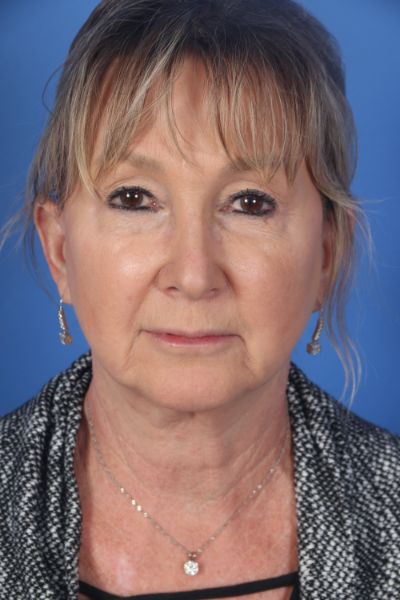 This patient in her late 50s had a previous facelift about 16 years prior. After that much time it is common for the signs of aging to show again. Dr. Guy performed a deep plane cheek/neck lift (lower facelift) with deep neck contouring (removal of post platysmal fat and debulking of the digastric muscles), and removal of excess buccal fat. In the after photos look how much more youthful she appears with a clean jaw line and amazing neck line. She is clearly very pleased.