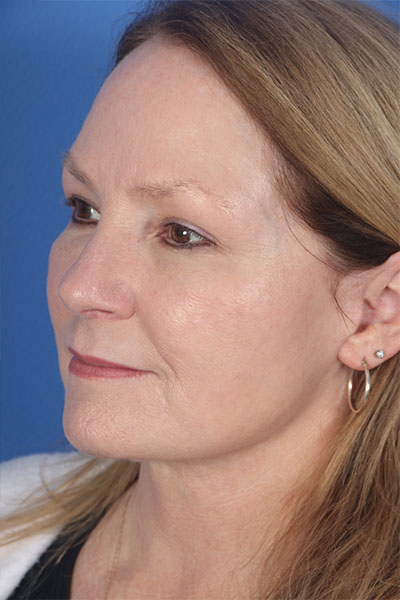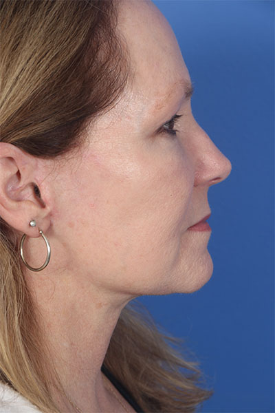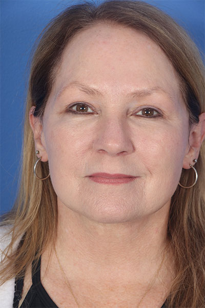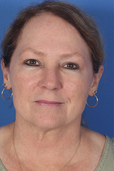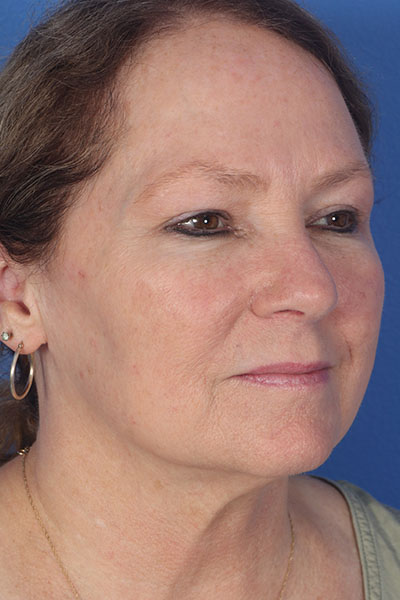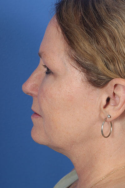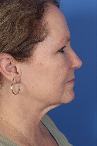 This patient in her early 60s underwent a deep plane cheek and neck lift with buccal fat removal, platysmaplasty, platysmal myectomy, and removal of preplatysmal fat with Dr. Guy. In the after photo you can see how great her neck and jawline looks yet she still looks completely natural.