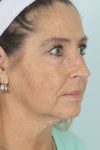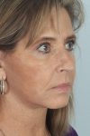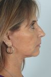 This patient in her early 50s was bothered by lower face and neck as well as her lower eyelids. We first performed a lower eyelid surgery. She loved the results and wanted to proceed with the next treatment. Therefore, we performed a lower facelift involving a cheek and neck lift as well as trimming of the platysma muscle (platysmal myectomy) with liposuction4 months later. You can see in the after photo how much better her neck and jawline are. Although she was never heavy or overweight, the after photo shows a slimmer face as a result of liposuction and resuspending the sagging tissues to their more youthful appearance. The after photo was taken four months postoperatively.