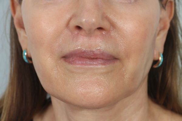 This patient was bothered by her shorter upper lip and the length between her nose and her lip. She underwent a conservative lip lifting procedure with the incision placed below the nose. It is called a bullhorn incision based on the appearance of the incision lines. In the after hoot you can see how her lips maintain a natural appearance and are fuller. The after photo has a flash and if you look closely you can see a thin pink line for the incision line. As the pink resolves as the healing is done it will be nearly invisible.