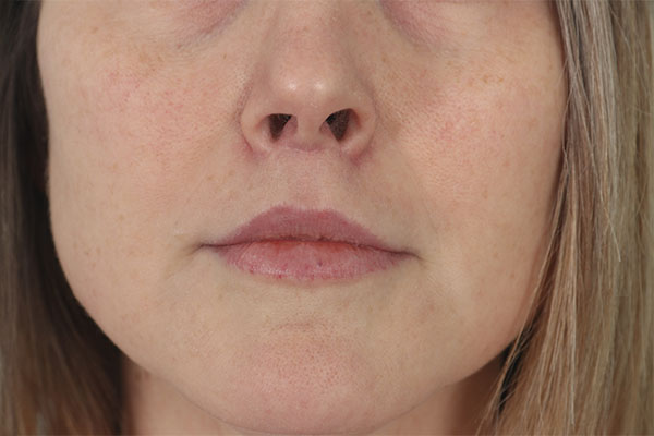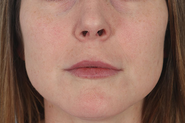 This patient in her later 40s wanted a fuller lip. She had tried fillers but they didn’t last and to get the volume she wanted created a ducky look. She underwent an upper lip bull horn lip lift in the office under local anesthetic. In the after photo you can see the added volume to her lip but still with a normal appearance. She is quite pleased.