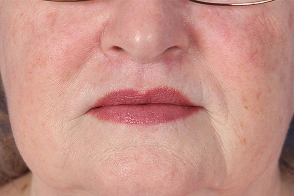 This patient in her late 60s had noticed her lips seeming to get smaller with age, a true statement. She underwent an upper bull horn style lip lift and lower lip direct lip lift to restore her volume from her youth. This surgery was performed in the office under local anesthesia. In the after photo you can see the natural volume restored.