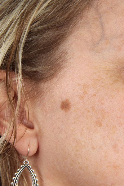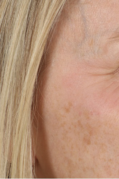 This patient was bothered by a brown spot on her right cheek. It is called a seborrheic keratosis. We performed hyfrecation(a technique using a fine-tipped instrument to selectively heat the skin). In the after photo you can see how the brown spot is no longer present and her skin has its normal color.