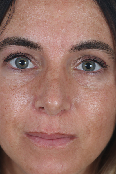 This patient in her early 30s was bothered by the masculine appearance of her nose. She was especially bothered by her profile. We performed a composite resection of the dorsal hump (meaning we removed both bone and cartilage) to improve the height of the nose, a cephalic trim (trimming the top of the lower lateral cartilages in the area of the tip) to improve the definition of the nasal tip, INTRAdomal sutures to further refine the nasal tip, INTERdomal sutures to narrow the nasal tip, and lateral osteotomies to narrow the width of the nose. She loves her new nose and profile. In addition, she underwent the EmbraceRF system to improve her jawline and neck