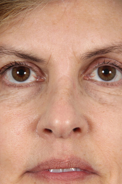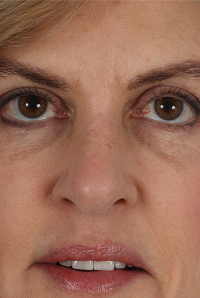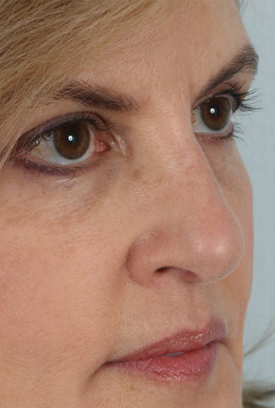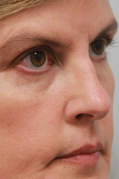 This patient in her 50s had a nasal fracture twice before. This left her with almost no airflow on the left side of her nose. It also left a depression just below her nasal bones where her upper lateral cartilage began on the left side. To improve her breathing a septoplasty was performed. To improve the appearance, the fractured bones were trimmed rasped) and an onlay crushed cartilage graft was placed over her left upper lateral cartilage. A very slight cephalic trim was performed to help refine her nasal tip ever so slightly. In the after photo she is 9 months out. The most telling photo is the oblique where you no longer see the depression or the appearance of prominent nasal bones.