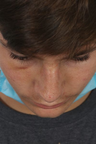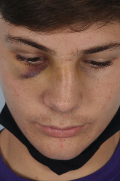 This teenage patient was hit in the nose during athletic competition. This caused a break of his nasal bones deviating them to the left. He underwent a closed reduction where no incisions are made and his nose is shifted back into the proper position. In the after photo you can see how is nose no longer deviates to the left hand side.