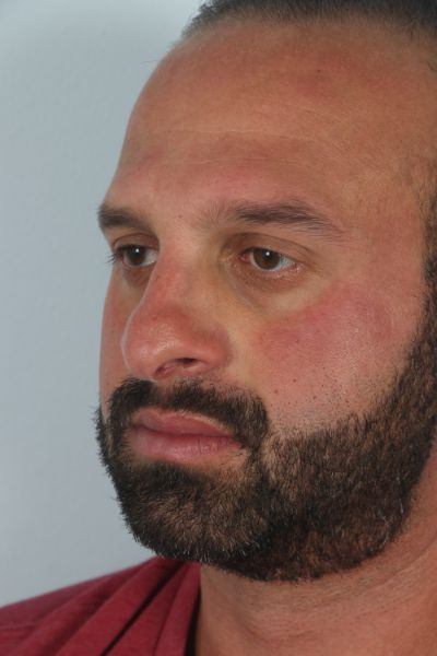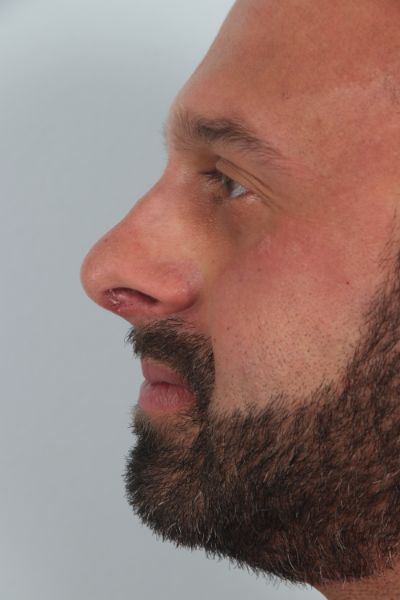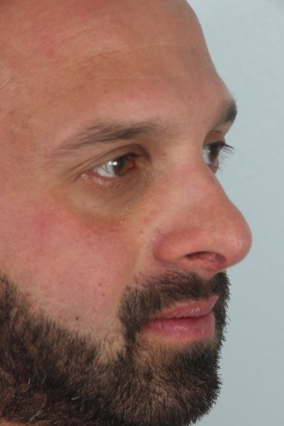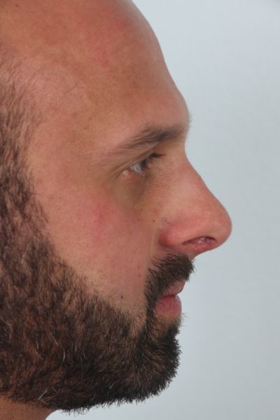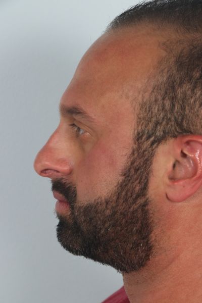 This gentleman in his mid 30s had been bothered by his nasal tip. He felt it was too prominent. He wanted it improved upon. Dr. Guy performed a tip plasty to address his concerns. This included a tongue in groove technique to help elevate the nasal tip, a cephalic trim to help contour the top part and sides of the nasal tip to provide a smooth transition to the middle third of the nose, and INTRAdomal sutures to narrow the nasal tip. In the after photo you can see how the harsh angles he had on his nasal tip are no longer present and he has a smooth transition between the tip and the rest of the nose. The tip of the nose is also slightly elevated. He is 3 months out in his after photo and loving his result.
