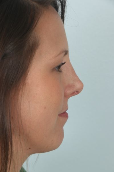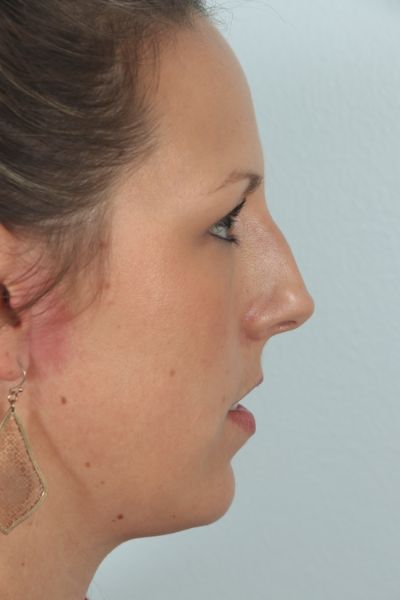 This patient in her mid 30s had previous trauma to the nose. This left the nose deviated to the right with septal deviations, and a twisted nasal tip. She also was bothered by the dorsal hump. She underwent a septoplasty to improve her breathing as well as a rhinoplasty. The rhinoplasty included taking down her dorsal hump, cephalic trim of the lower lateral cartilage, a unilateral right sided osteotomy to help reposition the deviated nasal bones, and sutures of the nasal tip to improve the symmetry. In the after photos you can appreciate the improvement in appearance but notices how her mouth is now closed as she can finally breathe out of her nose.