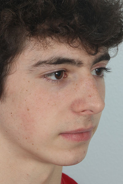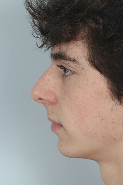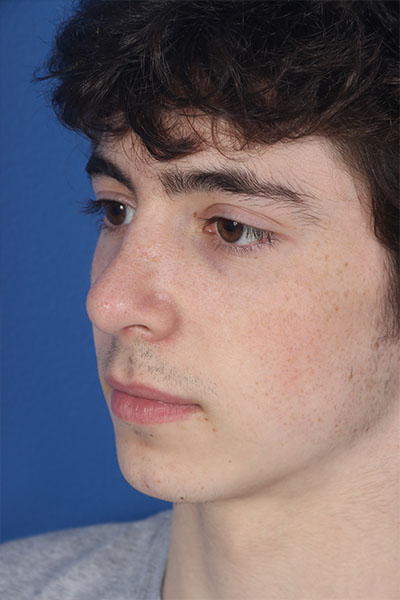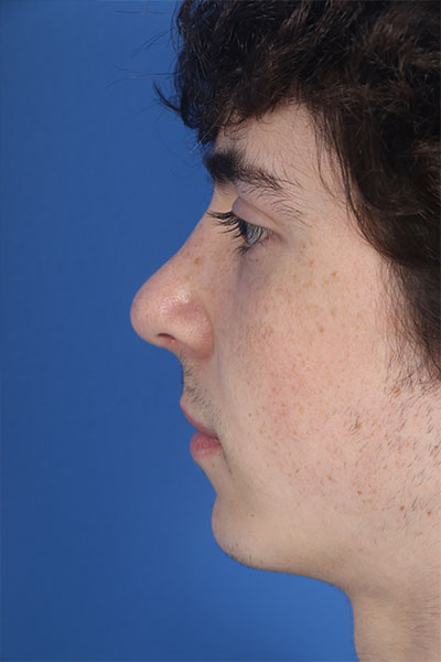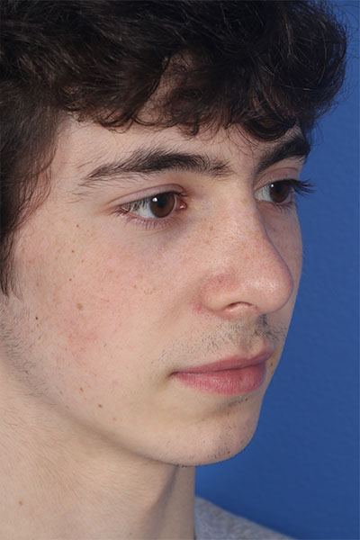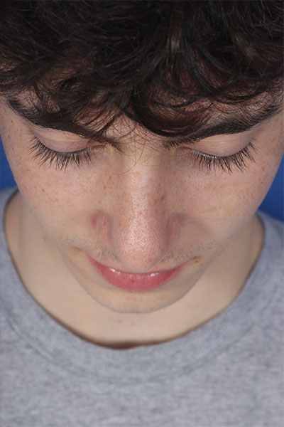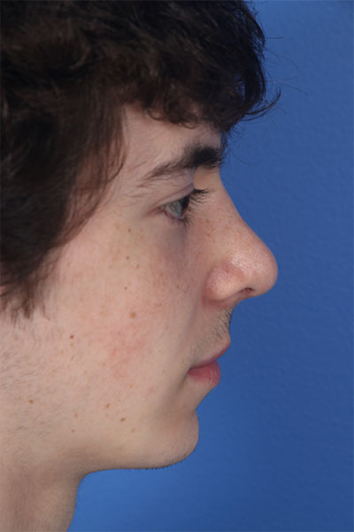 This teenager was bothered by his nose. We had previously performed a chin augmentation and he felt his nose was still too large for his face. In addition, he had a deflection of his caudal septum obstructing his breathing. He underwent a 3 mm hump removal, trimming of the posterior and anterior septal angles, and lateral osteotomies. You can see the improved nasal dimensions and from the worm’s eye view the improvement in his nasal airway.