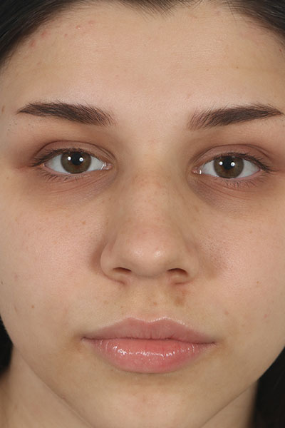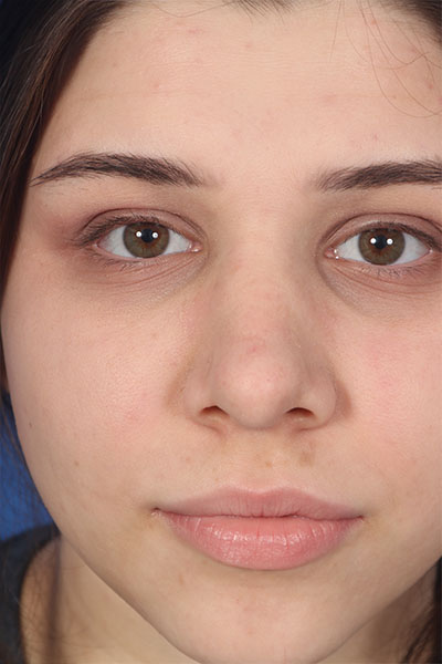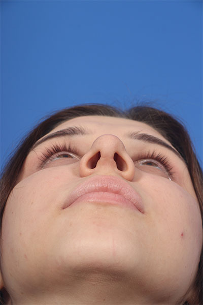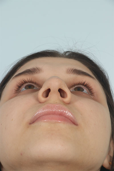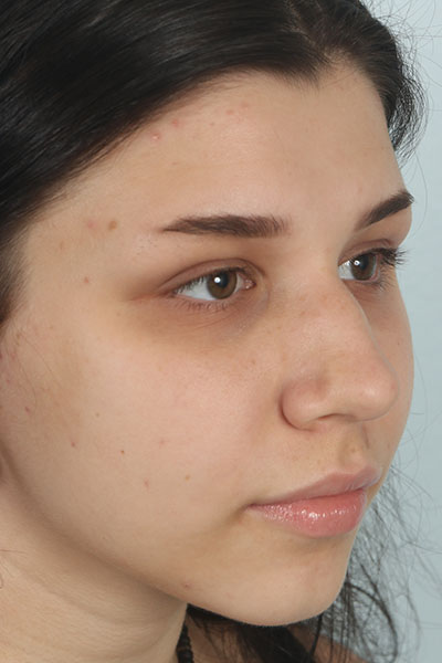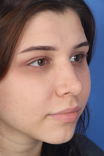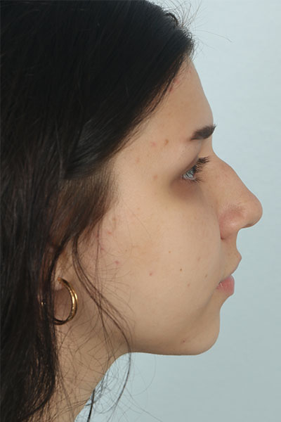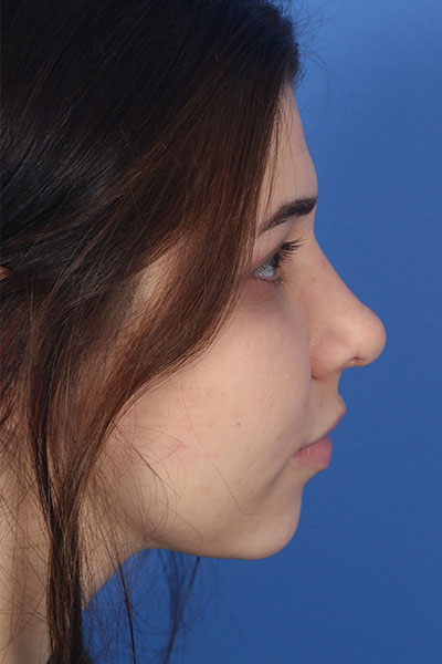 This teenager had been bothered by the size of her nose. It wasn’t proportional to the rest of her face. She underwent a rhinoplasty with Dr. Guy involving a 3 mm hump removal, trimming of the medial aspect of the upper lateral cartilages to narrow the dorsum, cephalic trim, inter and intradomal sutures to narrow and refine the tip, and lateral osteotomies to narrow the width of the nose. In the after photos you can appreciate her hump is gone, her nose is narrowed, she breathes great, and the overall nose is much more balance to her face.
