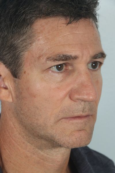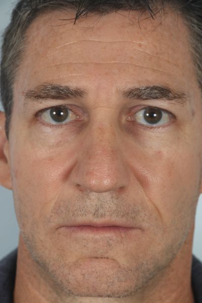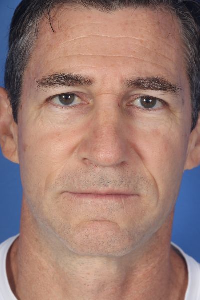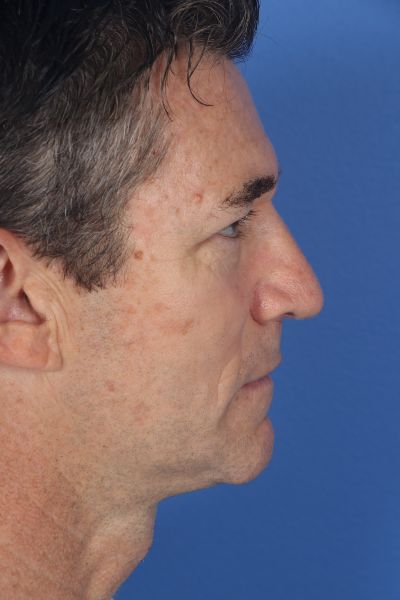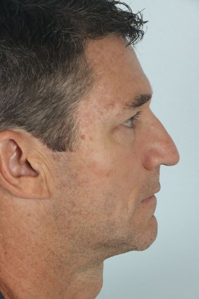 This patient in his 50s had more subtle requests for his nose. In his before photo you can notice a few things. First, he has a slight dorsal hump. Second, his tip is slightly wide. Third, the tip of his nose is ptotic (droopy) as the ideal male nose should have about a 90 degree angle between the lip and nose. He underwent what is referred to as a finesse rhinoplasty with a 1 mm hump reduction, a caudal septal extension graft combined with a tongue in groove to lift the nose anteriorly, and intra and interdomal sutures to narrow his nose slightly. In the after photo you can see how his hump is gone, his nose has been rotated up, and the tip is slightly smaller yet he maintains a masculine nose that is proportional to his face.
