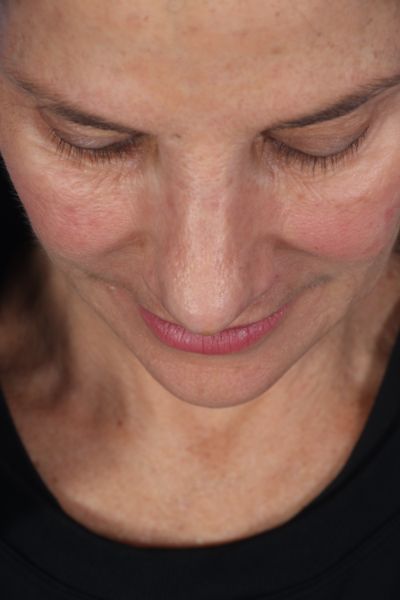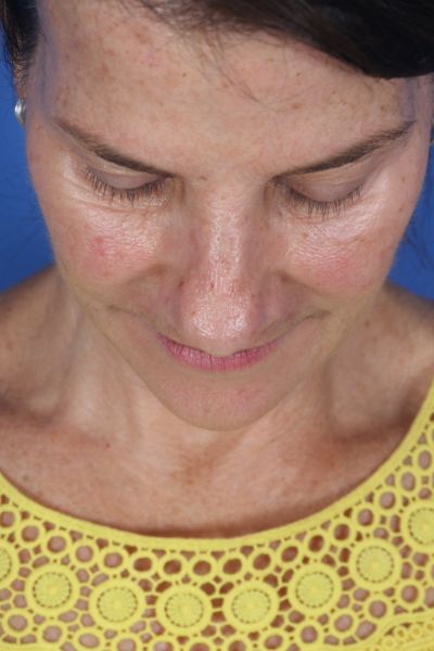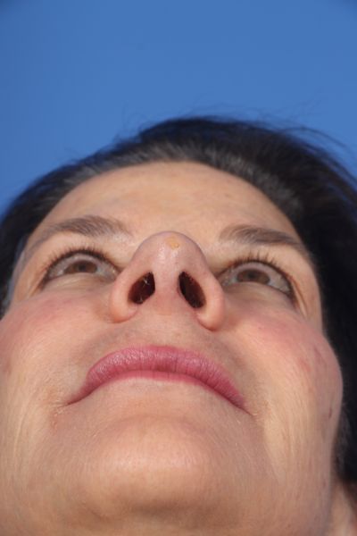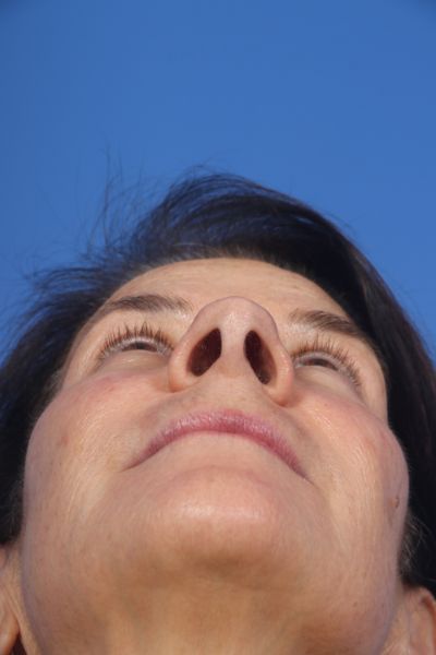 This patient in her 60s was always bothered by the tip of her nose. She felt it was just too big. Dr. Guy performed a tip plasty which is less extensive than a full rhinoplasty. It included a cephalic trim, INTRA and INTERdomal sutures, and Weir incisions to narrow the nasal base. In the after photos, especially the worm’s eye view and bird’s eye view you can really appreciate how much more refined and balanced her nasal tip is with the rest of her face.
