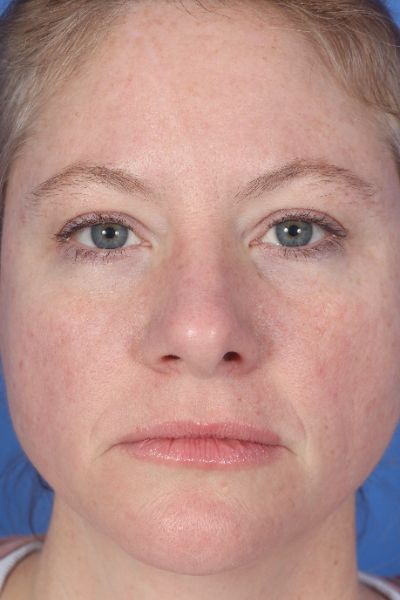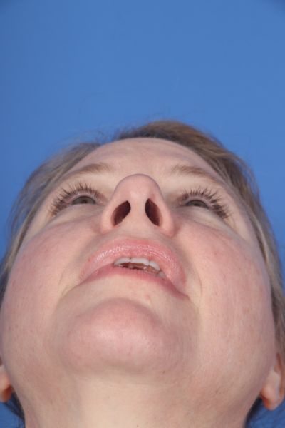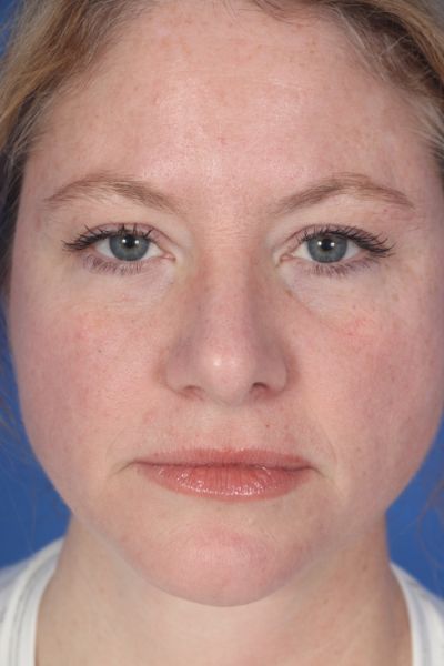 This patient in her early 40s was bothered by the width of her nose and nasal tip. She felt it didn’t fit her face. Dr. Guy performed a rhinoplasty which included a cephalic trim, INTRA and INTERdomal sutures, trimming of the medial aspect of the upper lateral cartilages, and lateral osteotomies. In the after photo taken 6 months post operatively you can see how the overall width of her nose and tip have been improved.
