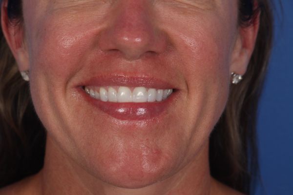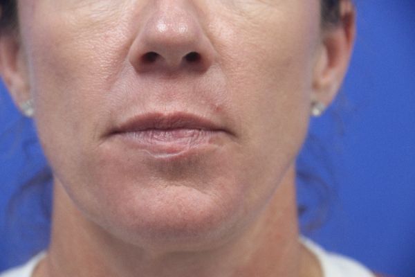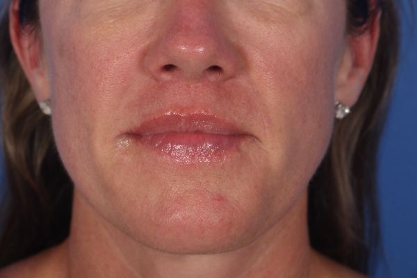 This patient in her 40s unfortunately had a bicycle accident where she hit her lower lip. She presented desiring an improvement in the appearance and also greater lip volume if that was an option. She underwent a scar revision to the lower lip combined with lip advancement. In the after photos taken 7 months post operatively, notice not only how much more symmetrical her smile is but also the greater resting volume of her lower lip.