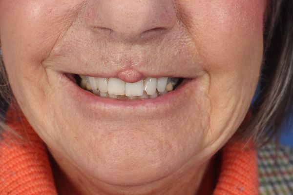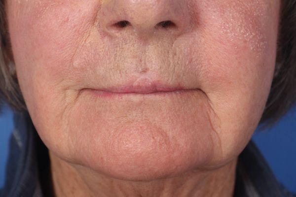 This patient had fallen and hit her upper lip. She had not sought care until 2 days later and had developed an infection. This left the resulting scar you see in the before photo. Dr. Guy performed two separate surgical procedures as part of a staged approach to revise her scar. The reason is you cannot make incisions completely around this area in one surgery as it would have affected blood supply to the area. With two surgeries. Dr. Guy was able to revise the entire scar area. In the after photos you can see how her upper lip is no longer an eye catcher and appears completely natural.
