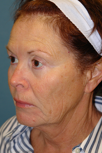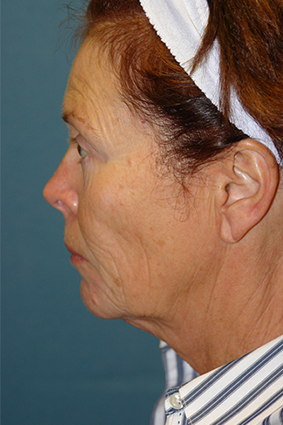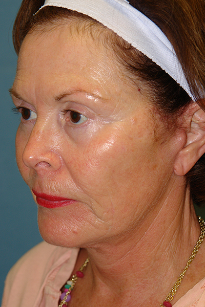 This patient is 10 weeks out following a facelift that involved her neck, cheeks, and temporal area. Five days after her surgery she also underwent a full face resurfacing with a fractionated carbon dioxide laser with a single pass of an Erbium:YAG laser. Notice in the first picture the overall improvement in her skin quality and jawline. The dark spot she had on her left cheek is gone and the spots next to her left eye are improved. Even from this oblique view, you can see the neck improvement. On the oblique and lateral views you can see the improvement in the fullness over her cheekbones and the improvement in the hollowness below her cheek as a result of repositioning her own tissue back to where it was when she was younger. It’s also important to notice you cannot see any of her incisions as Dr. Guy places them in locations that helps them stay camouflaged. Of note, this was the first facelift Dr. Guy performed. You can see even from the start he provided amazing and natural results.